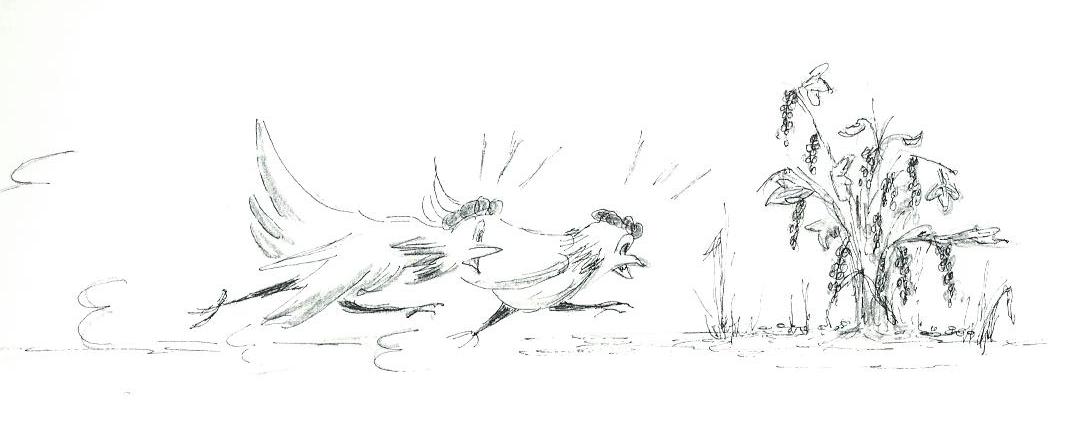Din lopen de hennen noar d'appelhof. Doar is lekker gras en, wel wait, kropt ter wel n lekkere wurm of zuks wat rond.