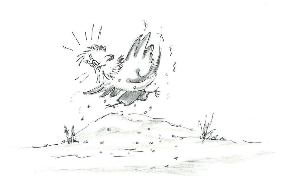 Mit n grode sprong vlogt ze over d'sloot en haard koakelnde komt ze weer op t haim.